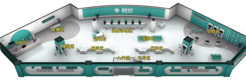 本項(xiàng)目應(yīng)用VR 虛擬現(xiàn)實(shí)技術(shù),開發(fā)互動(dòng)營業(yè)廳虛擬現(xiàn)實(shí)場景應(yīng)用,可實(shí)現(xiàn)業(yè)務(wù)辦理、故障報(bào)修、咨詢服務(wù)、電 費(fèi)繳納等立體演示功能。